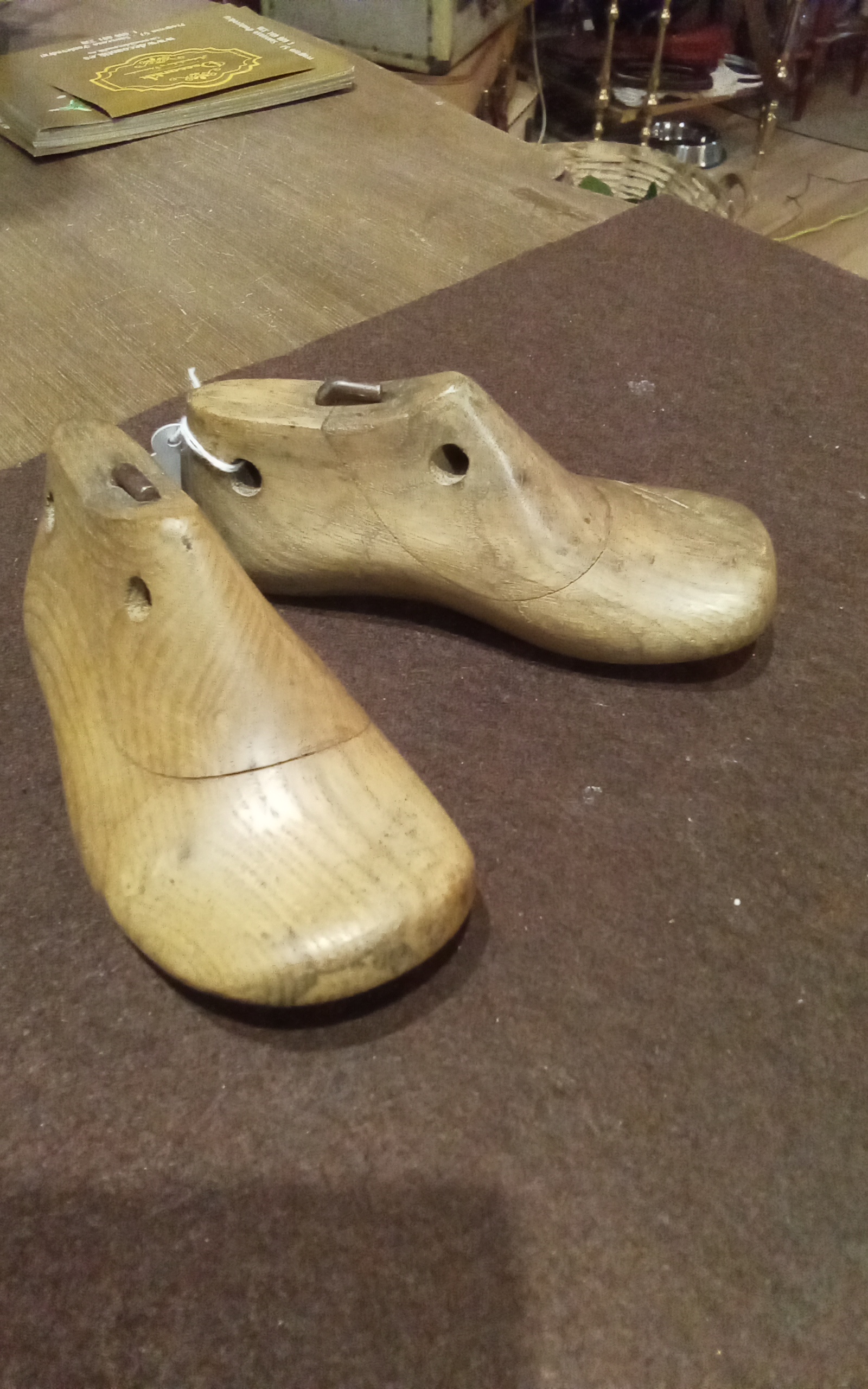 Antiguas hormas de zapatos de niño con material en madera..preciosas piezas de decoración..tengo 2 pares
