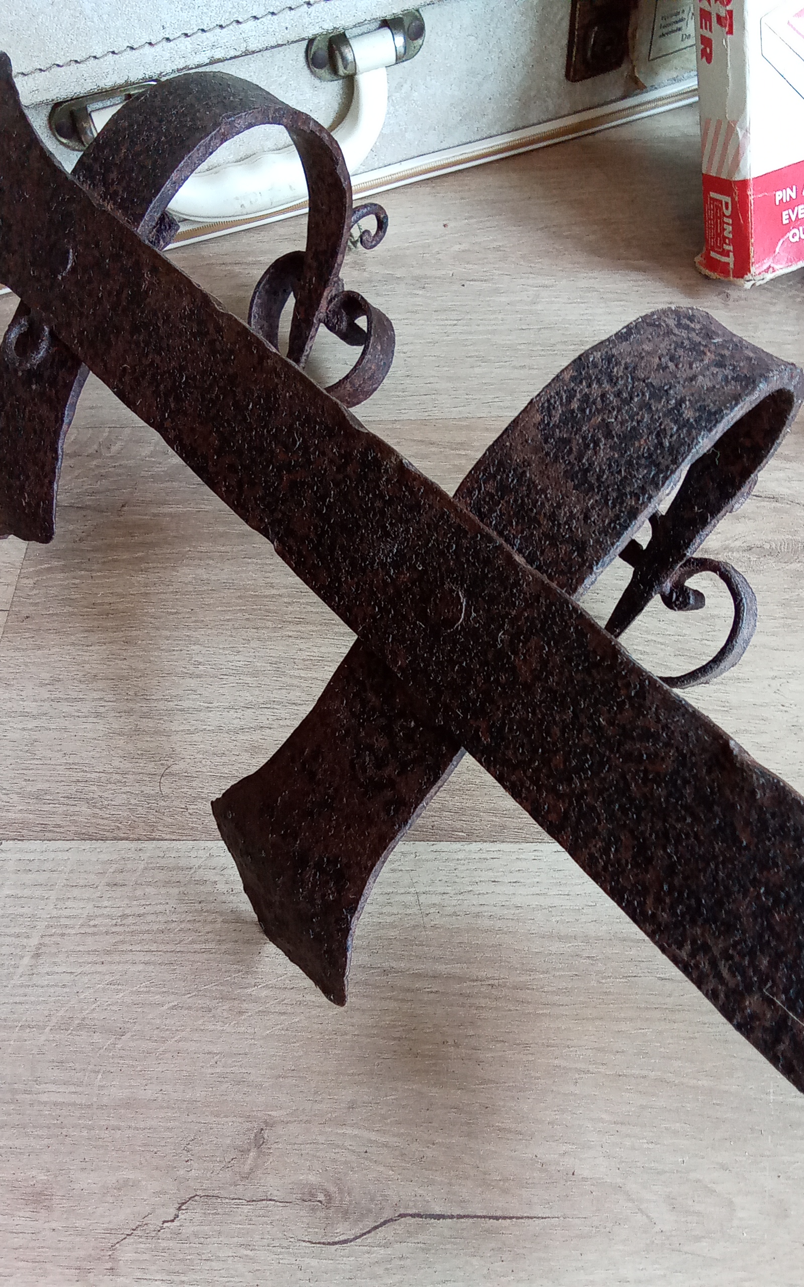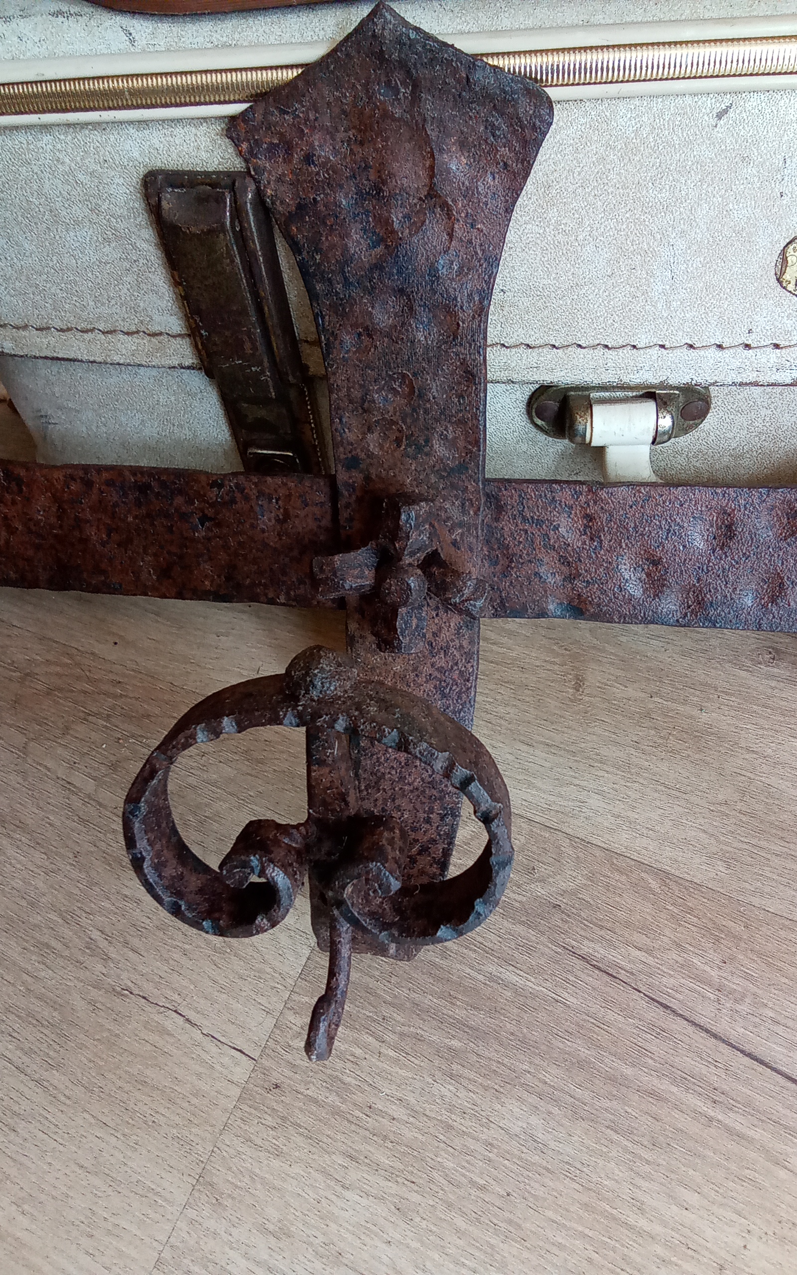 Antiguo perchero artesanal con 3 colgadores, todo hecho en forja..para decoración rustica. Medidas de largo 58cm.