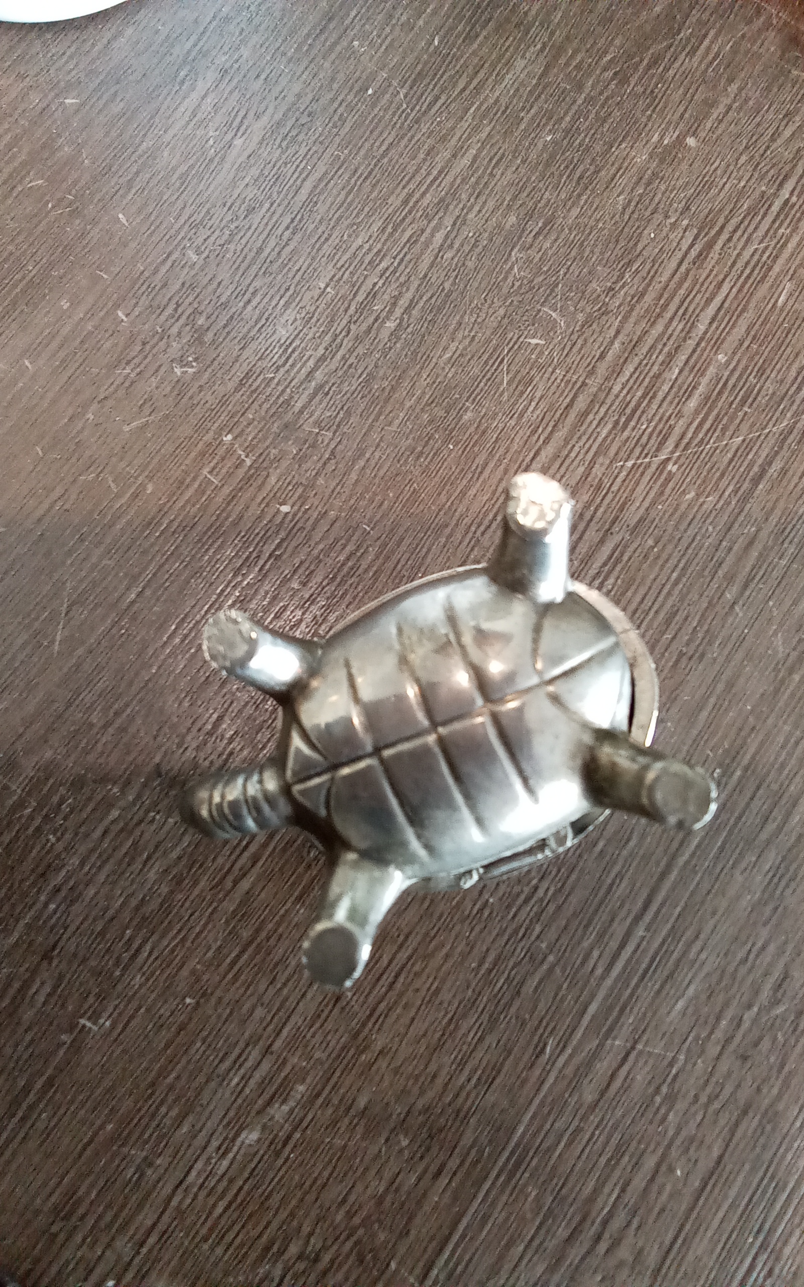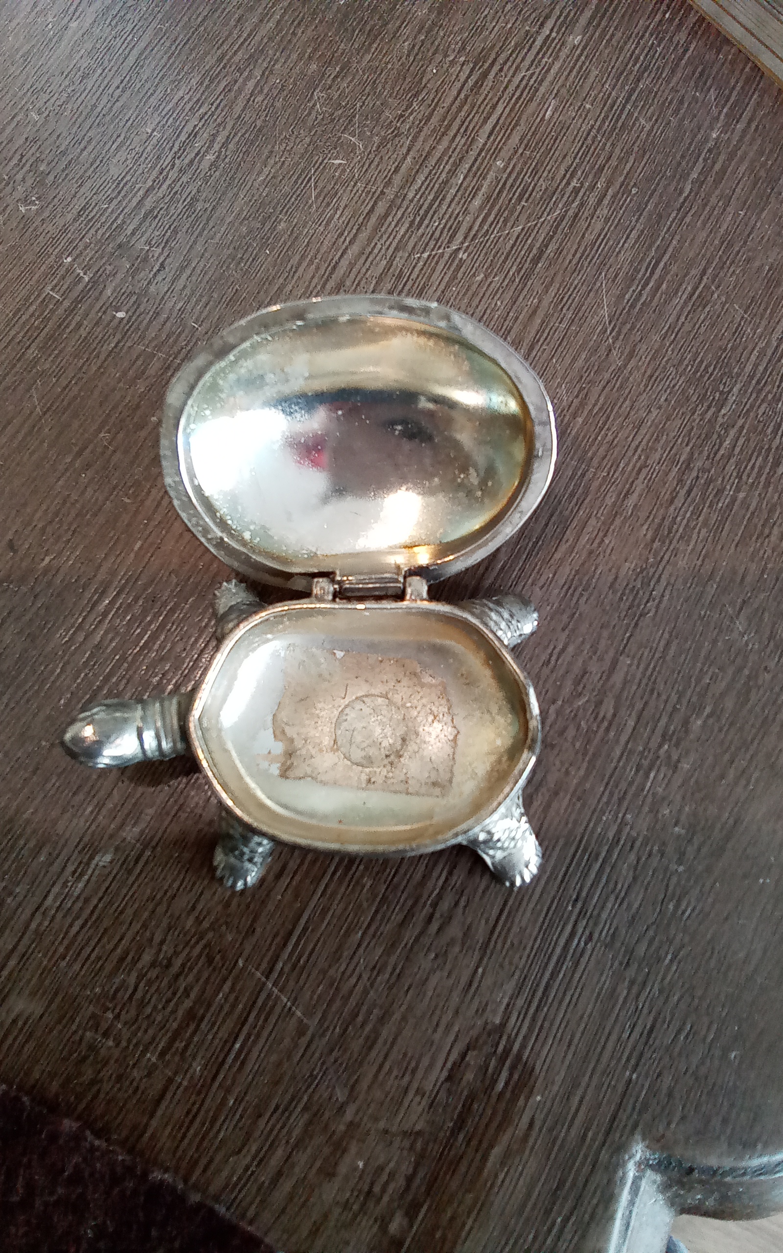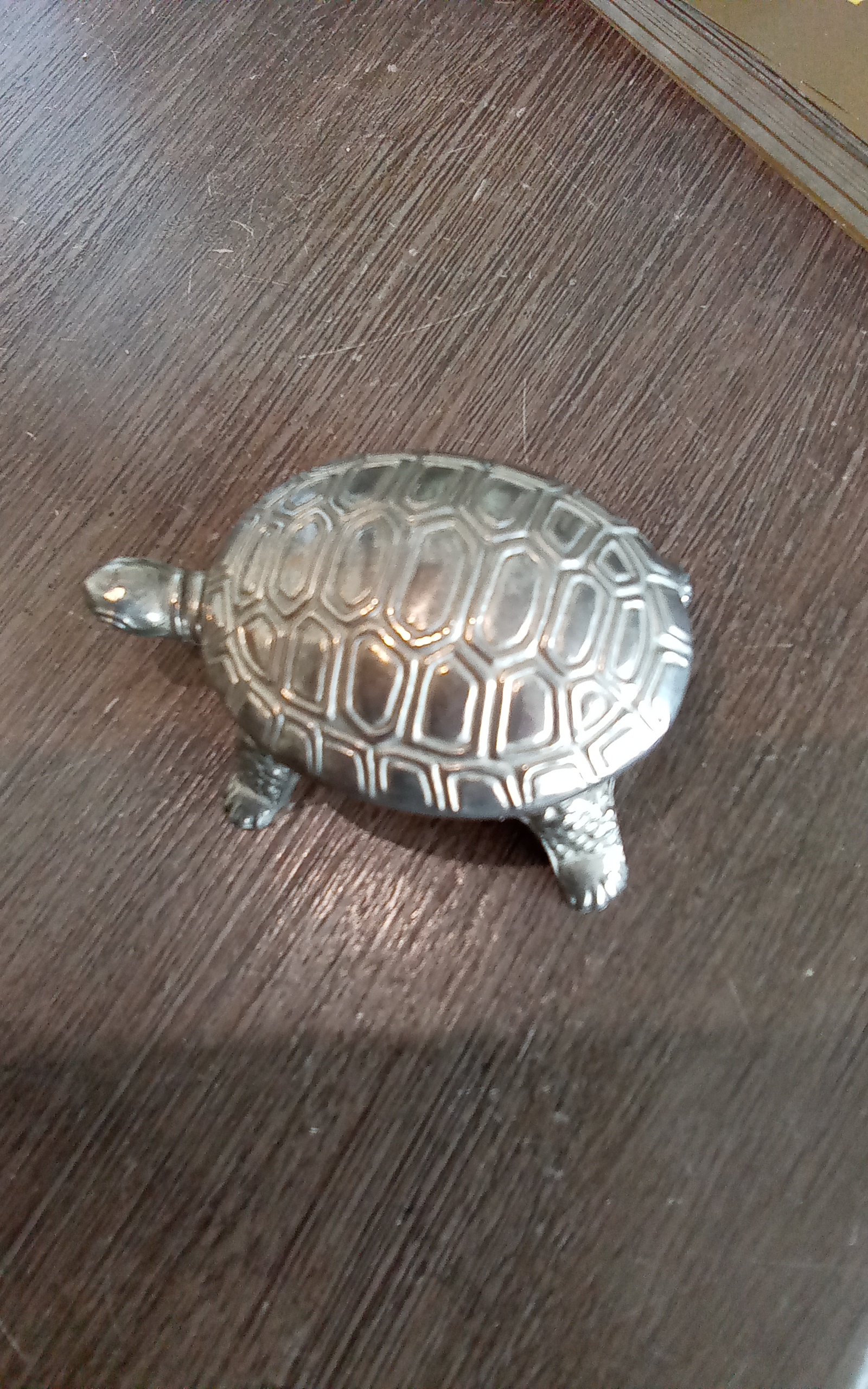 CAJITA o pastillero en forma de tortuga y material plateado..vintage.